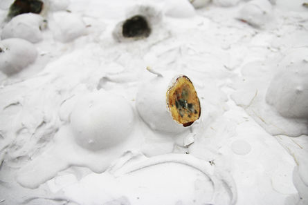 installation of 100 plaster eyes